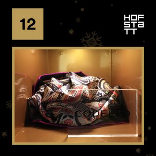 GESCHENK 12 unseres Adventskalenders ist ein schönes Seidentuch von unserem Codello-Shop und ein toller Shopper mit Strass-Motiven dazu, zu sehen ...